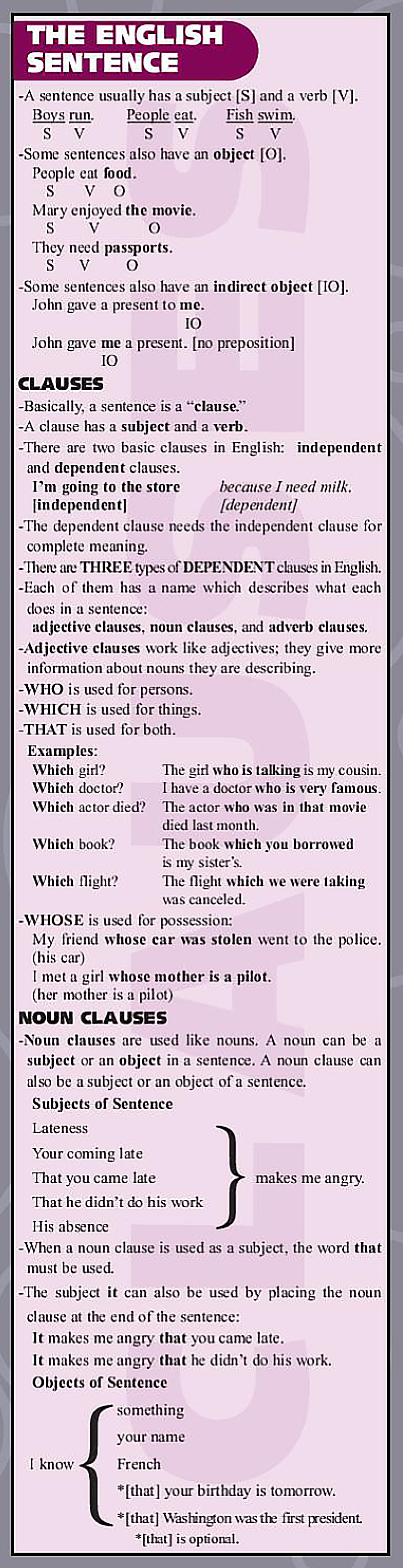 Principal Clause, Subordinate Clause, Noun Clause, Adjective Clause, Adverb Clause